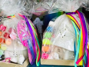 We do NOT fire our ceramics once you have painted it, we use an instant glaze, making your outing far more affordable, with only one trip required.